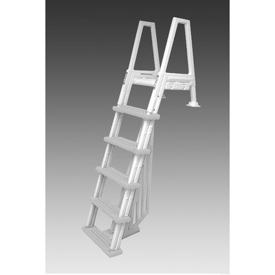 6000B Features: -Ladder. -Flat treads for easier climbing. -Includes deck platform. -No sand required. -Anti-entrapment barrier. -White side rails with grey trends for high visibility. -Deluxe heavy-duty in-pool ladder. Specifications: -Weight guidelines: 300 lbs. -Totally adjustable for deck heights from 46" to 56". -Treads measure 5" x 18" Wide.