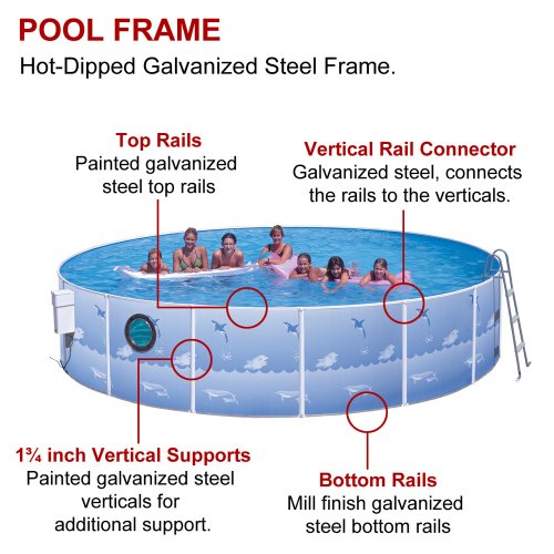 - Strong painted hot-dipped galvanized steel components.- All-Weather Vinyl Liner that withstands everyday use all year round.